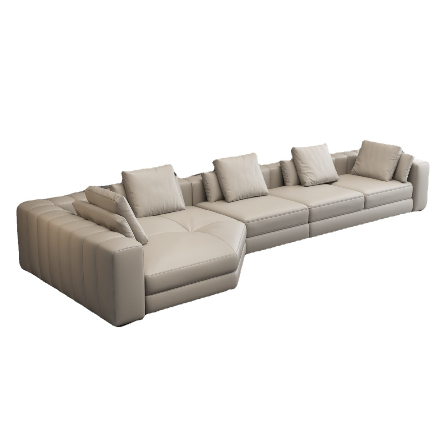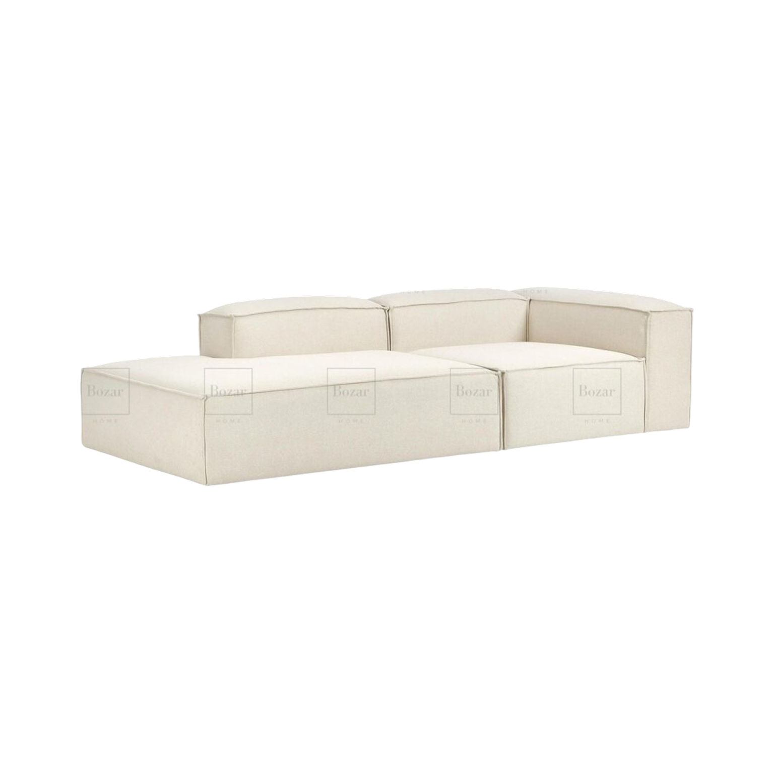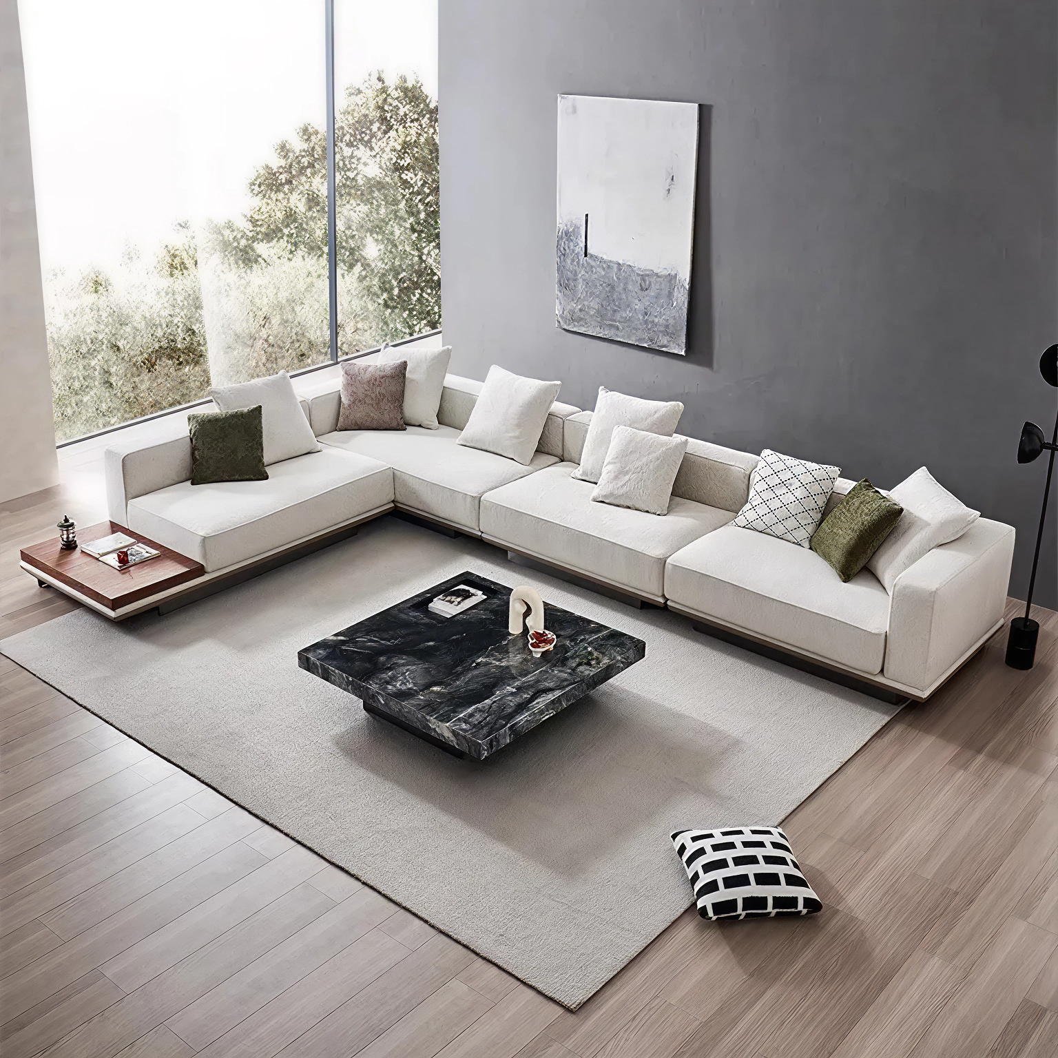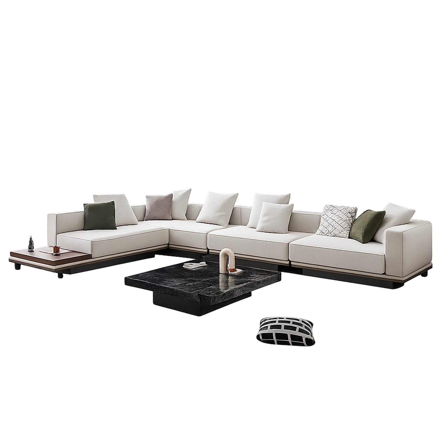 Jonathan — a modern, low-profile modular corner sofa. Clean lines,  deep seats, and plush back cushions for everyday comfort. The modules let you build L or U layouts, and the slim base keeps the look airy. Perfect for a spacious, contemporary living room.