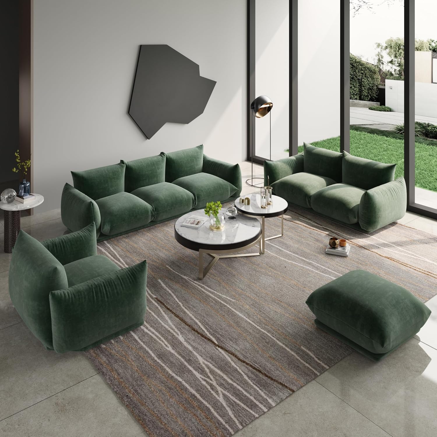 Leur silhouette capitonnée, leurs accoudoirs rebondis et leurs coussins ultra-moelleux créent une assise accueillante, idéale pour des moments de détente élégants