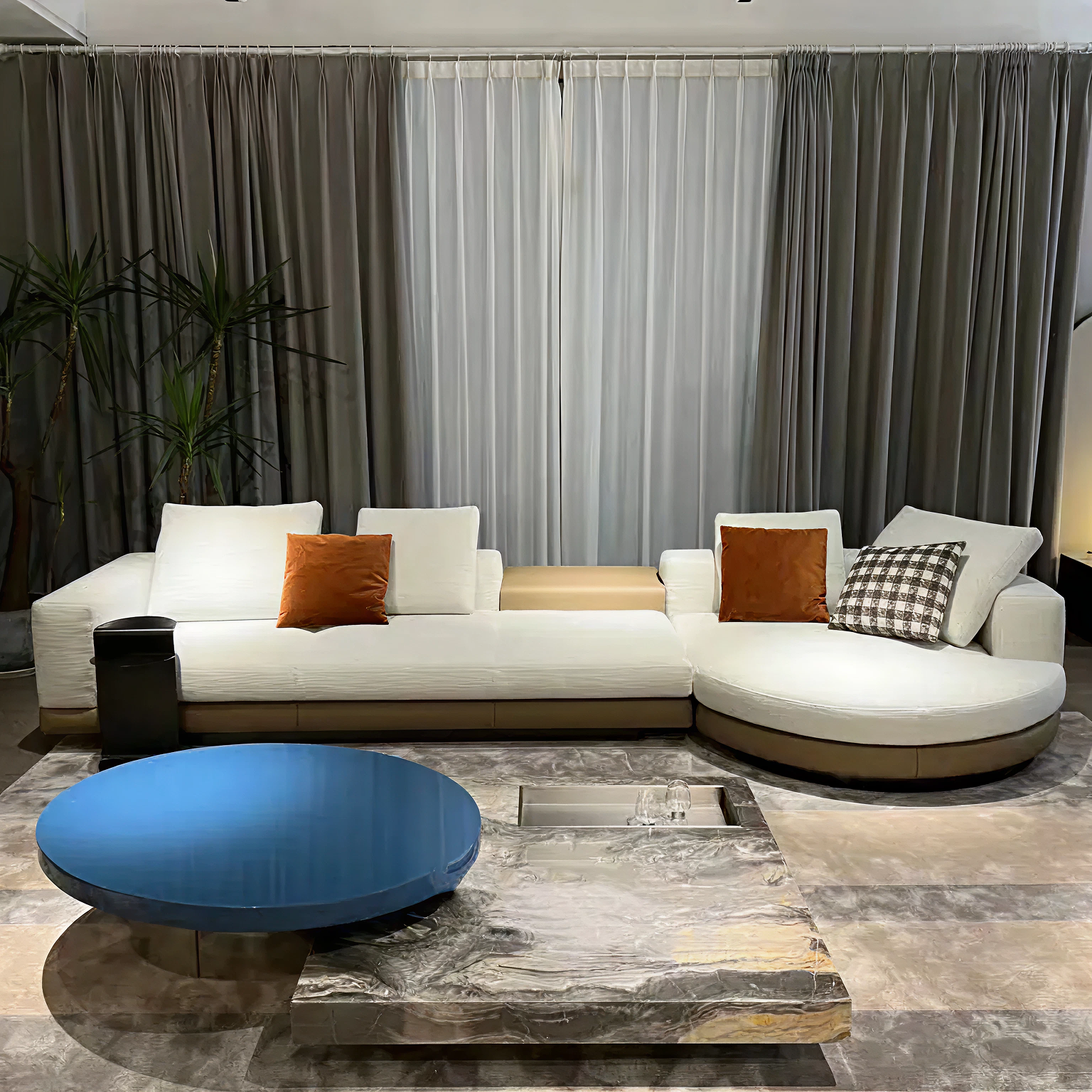 Le Sofia est un salon d’angle au design contemporain avec une extrémité arrondie façon méridienne. Sa ligne basse, ses coussins généreux et sa composition modulaire en font une pièce maîtresse aussi élégante que confortable.