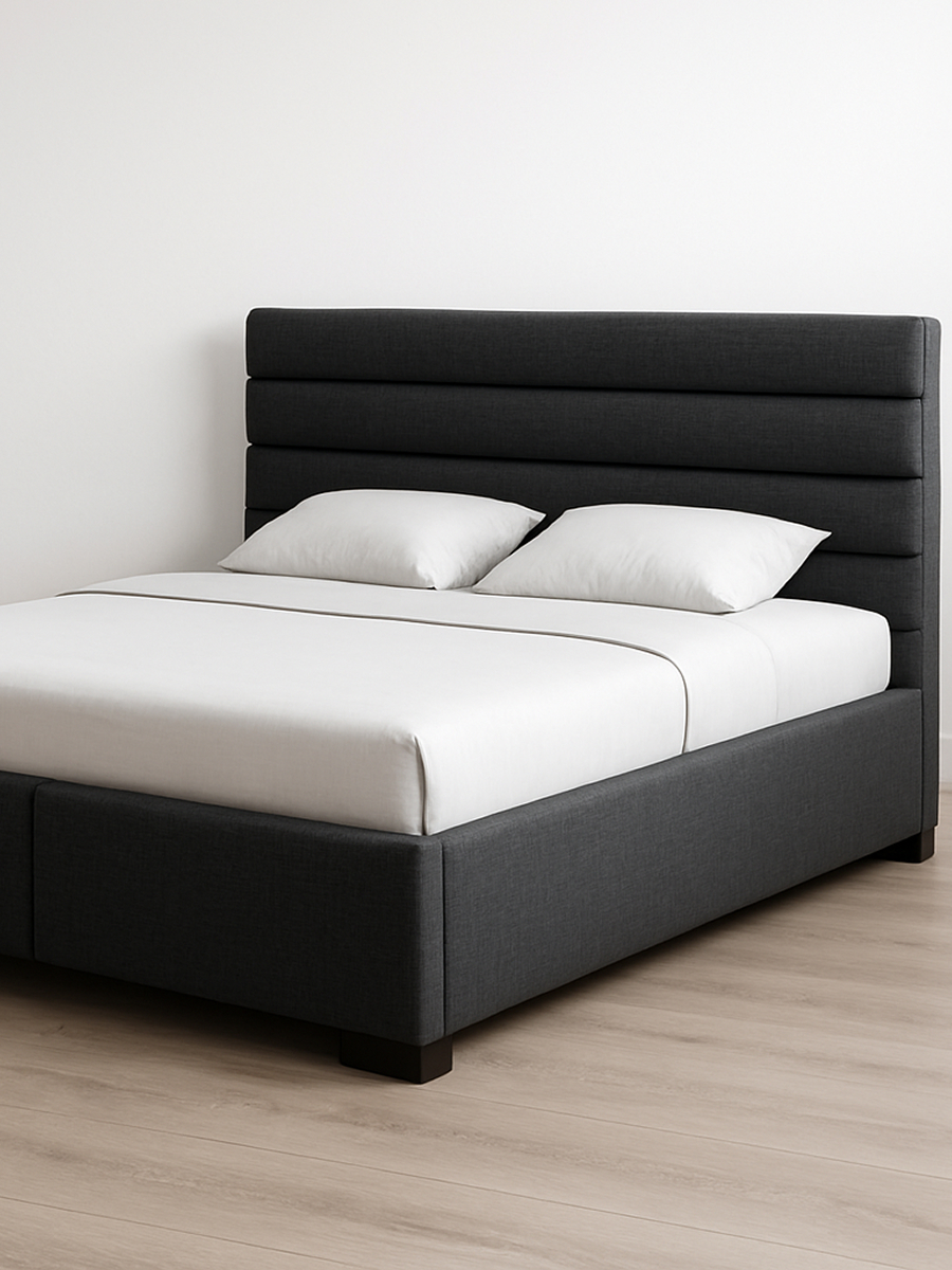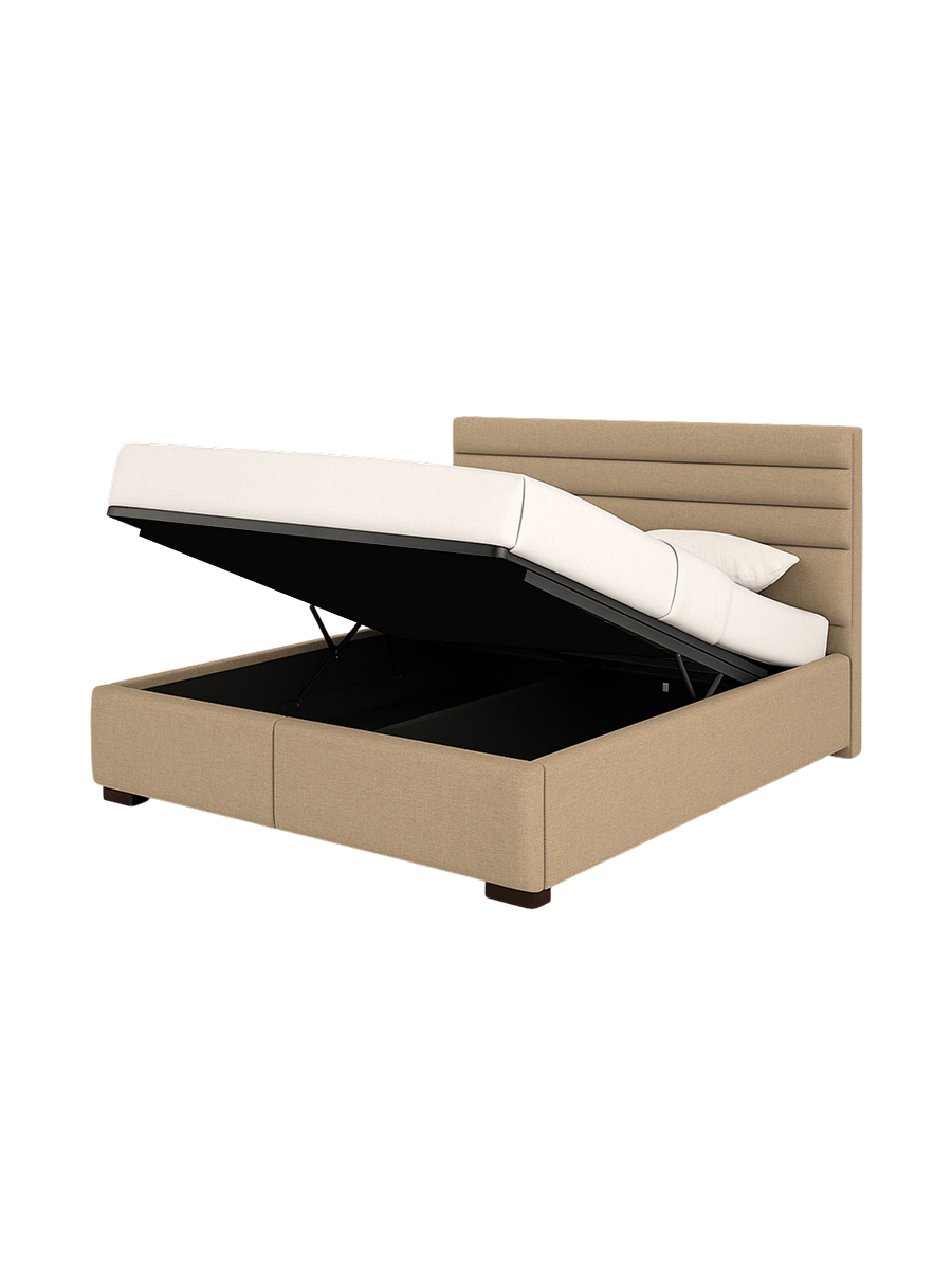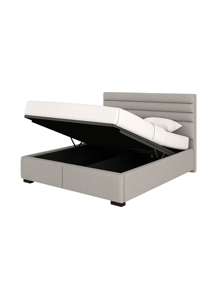 Le lit Orion Rangement allie design moderne et praticité. Son cadre épuré est habillé d’un tissu élégant et sa tête de lit capitonnée à lignes horizontales apporte une touche contemporaine à votre chambre. Grâce à son système d’ouverture relevable, il offre un vaste espace de rangement discret sous le sommier, idéal pour optimiser l’espace sans compromis sur le confort.