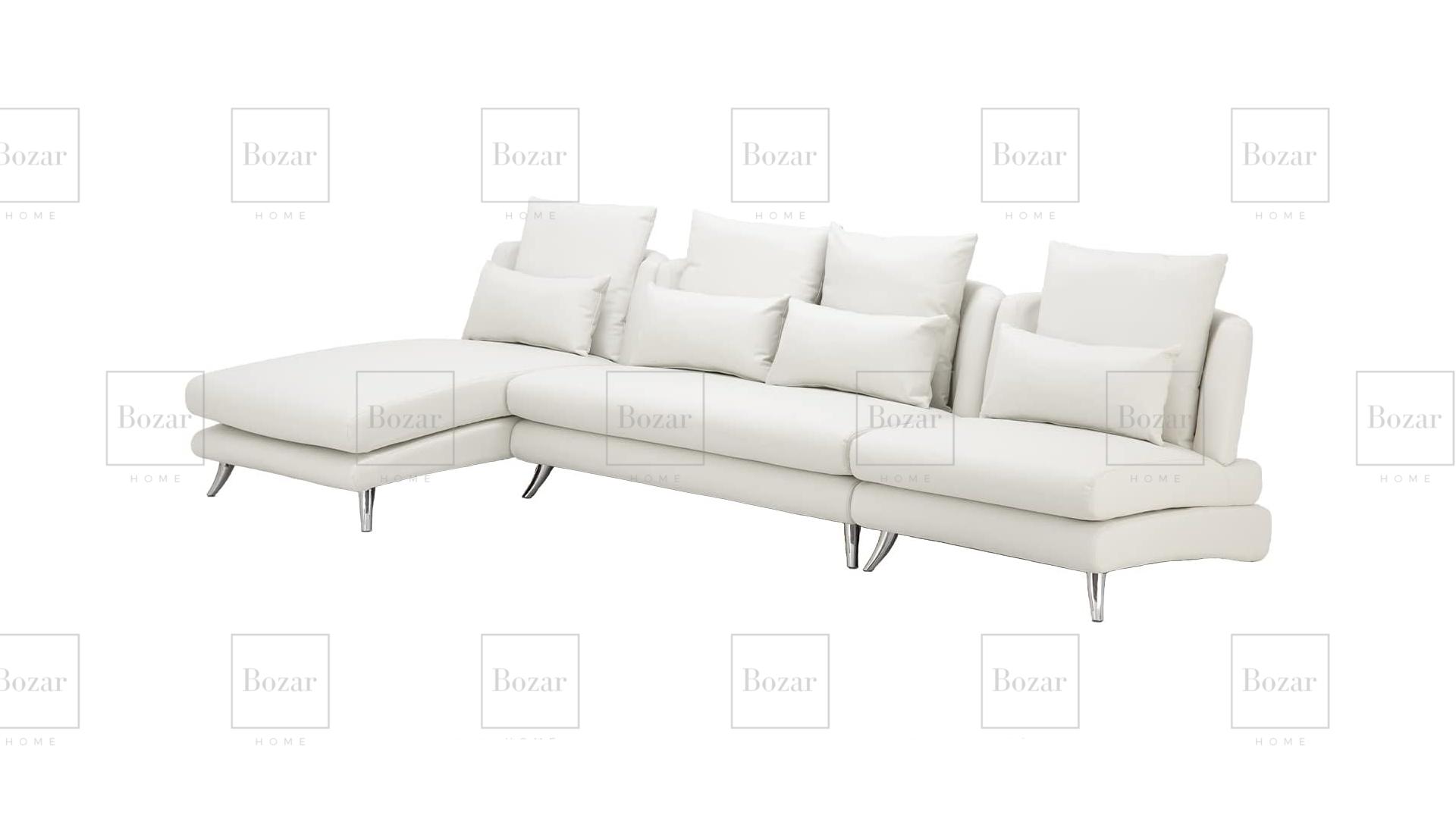 - Le corps principal du cadre est en cuir et les coussins d’assise et de dossier sont en tissu. Ce canapé est un design moderne et élégant