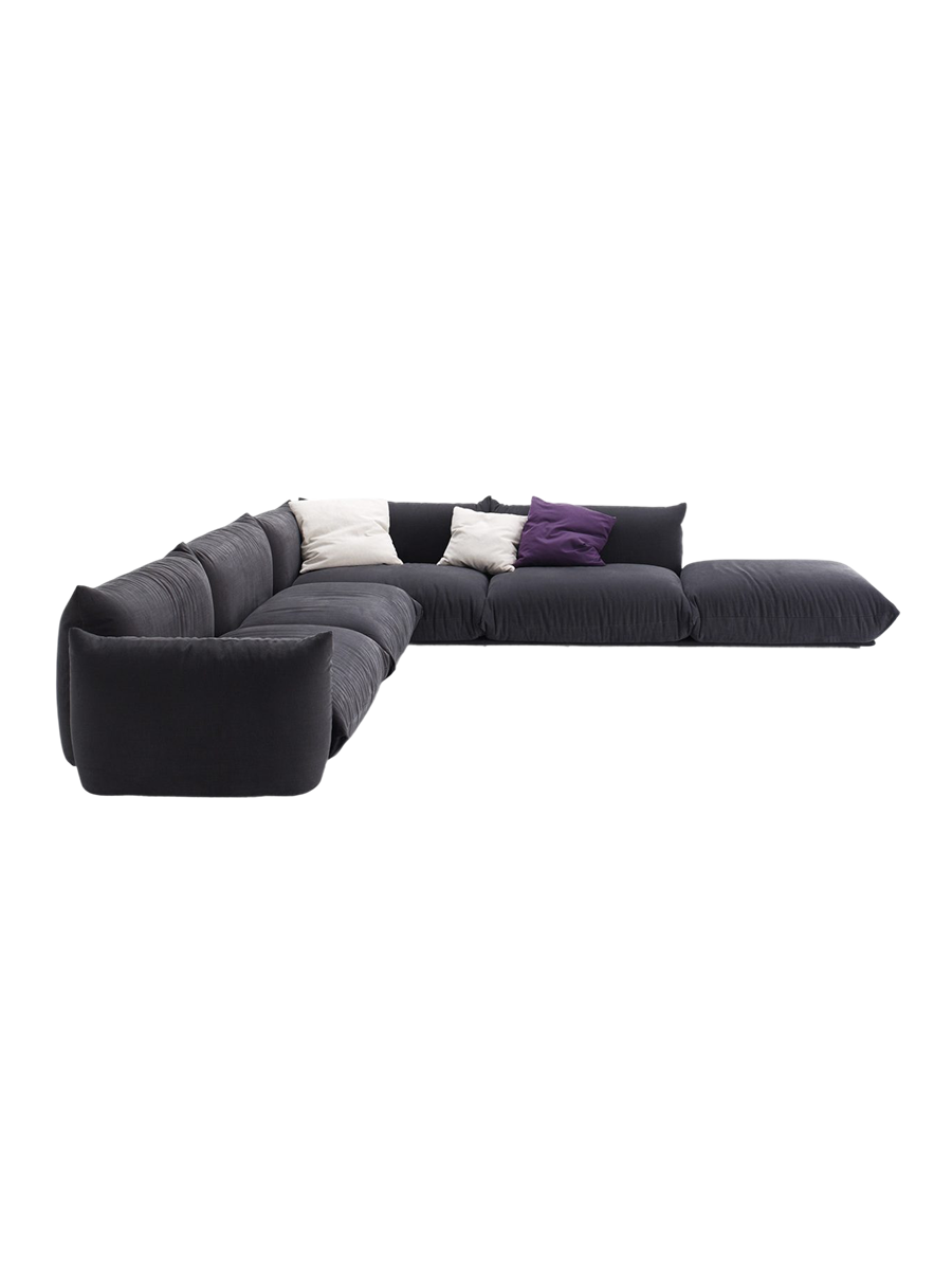 Le système Marena, propose un canapé modulaire autour d’un concept de “pillow design”. Les coussins se fixent directement sur un châssis tubulaire métallique, offrant une silhouette douce et généreuse. Ce design allie un confort câlin et une modularité contemporaine, idéale pour aménager espaces de vie ou espaces collectifs