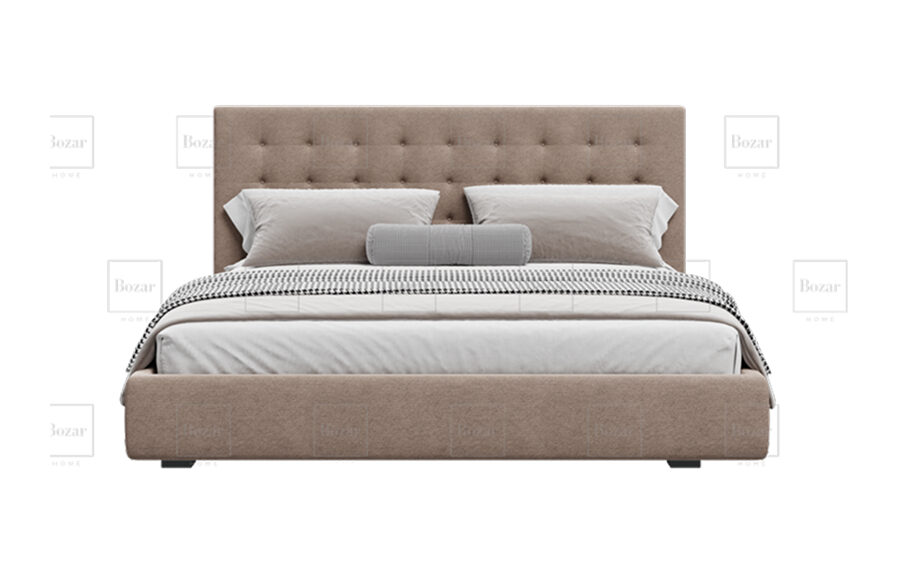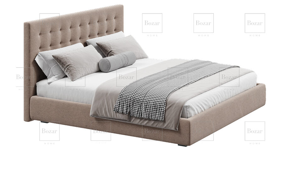 - Design moderne : Tons beige clair et marron, complétés par des coussins décoratifs gris et blancs.