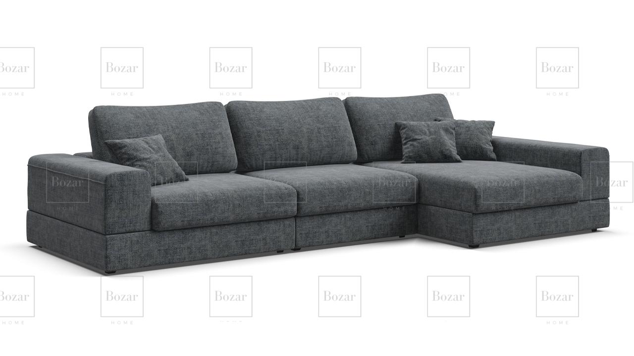 Ce canapé d’angle contemporain en L est l’incarnation du confort et de la fonctionnalité. Avec son revêtement en tissu gris foncé élégant, il apporte une touche de sophistication à tout espace de vie. Le canapé comprend trois coussins de dossier et un coussin supplémentaire qui peut servir de support pour le bras ou comme coussin de dos additionnel.
