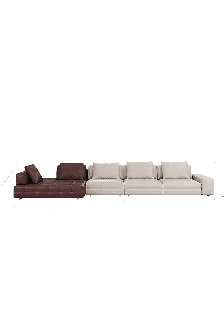 Canapé modulaire Cyren, assise basse et profonde, dossiers et modules configurables.