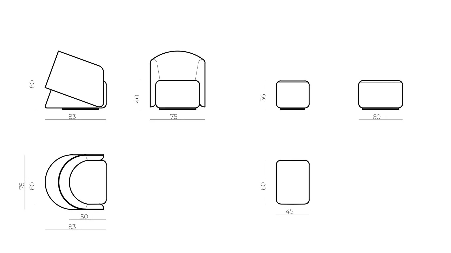 Dimensions : H 80 x L 83,5 x P 75 cm.