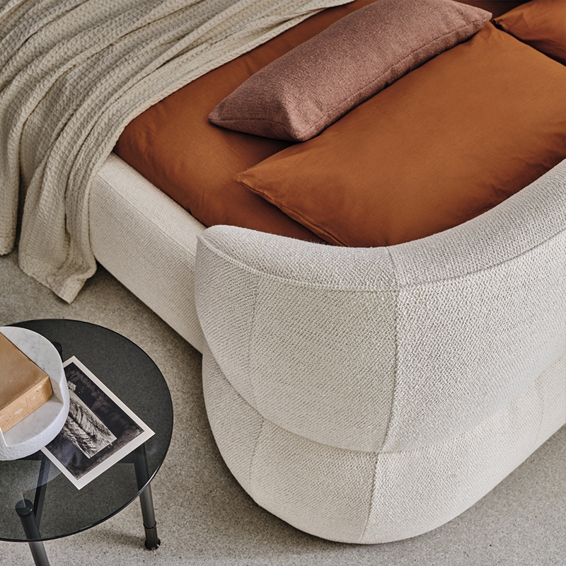 Le lit Angelo aux formes arrondies et à la forte présence scénique est un objet sculptural qui s’exprime le mieux dans un emplacement central. Revêtement en tissu dans différentes catégories.