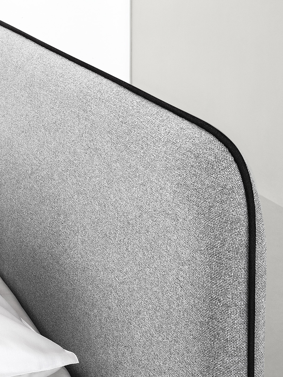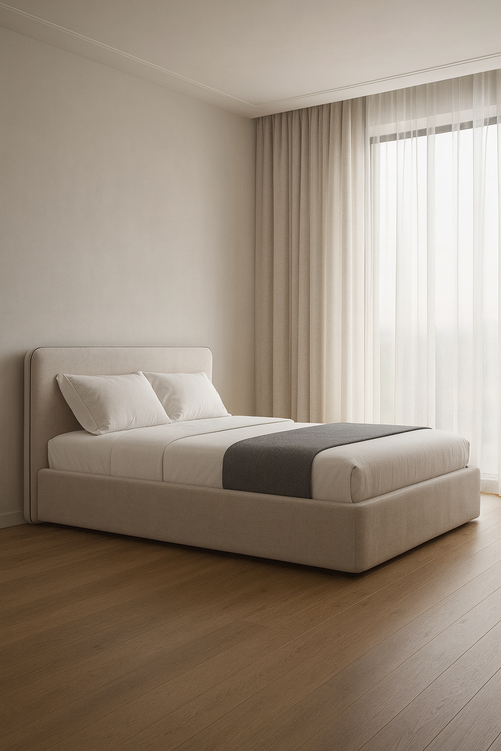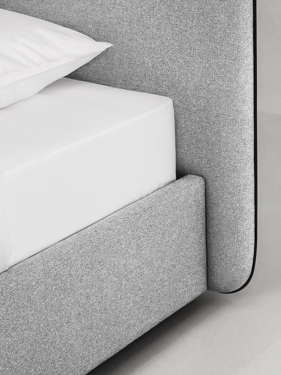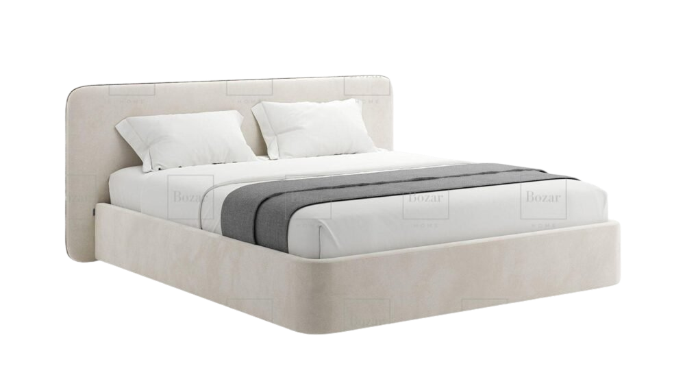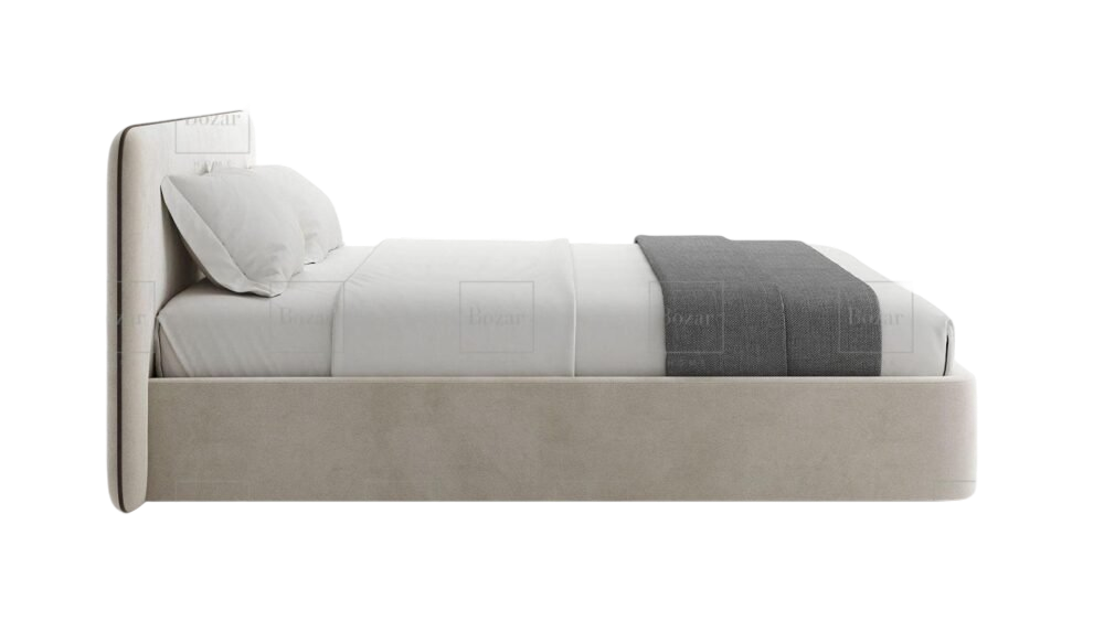 Lit Aurora, au design contemporain et raffiné, habillé d’un tissu doux et élégant. Sa tête de lit rembourrée assure un confort optimal pour se détendre ou lire, tandis que sa structure basse et ses lignes épurées apportent une touche moderne à la chambre. Disponible avec un large choix de tissus