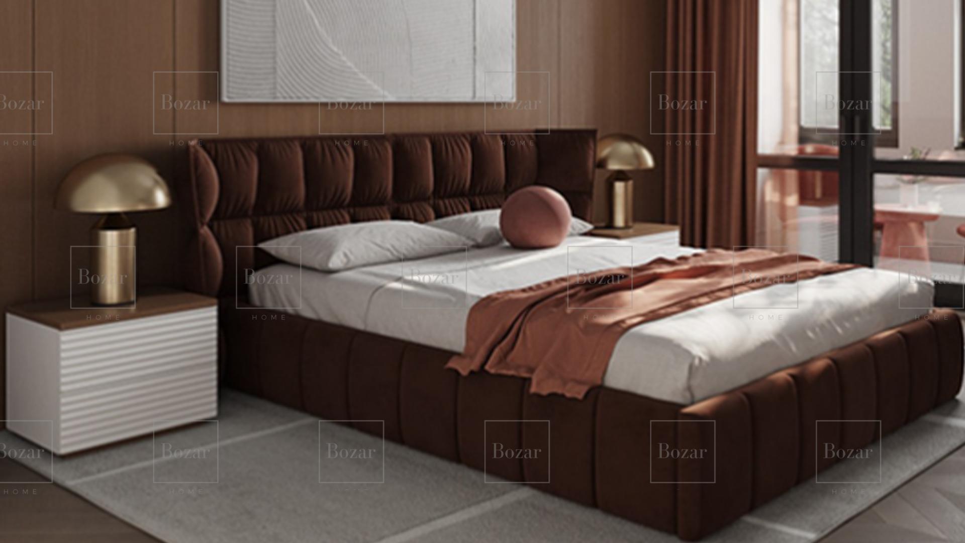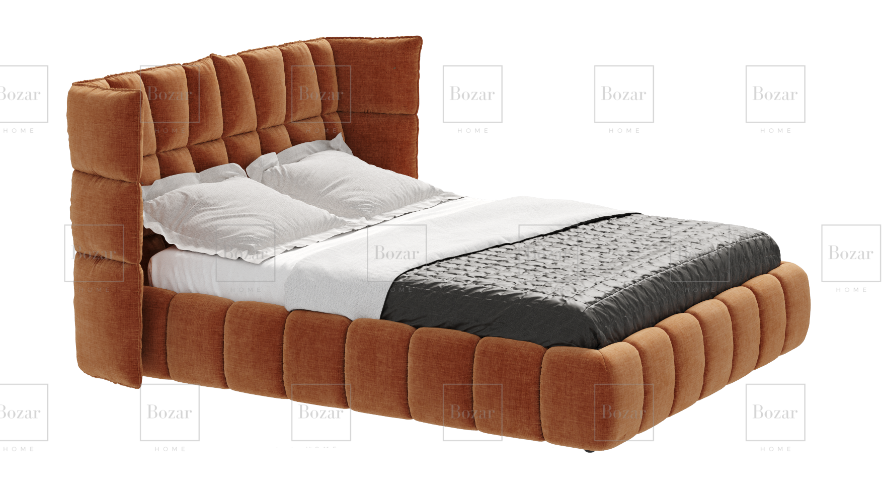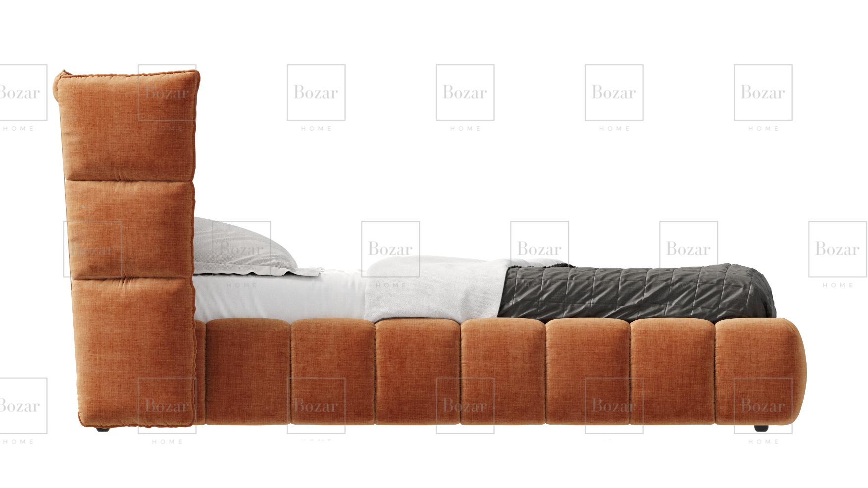 Son design soigné, marqué par de jolis détails et un rembourrage doux, crée une atmosphère à la fois contemporaine et chaleureuse. La tête de lit haute, aux bords arrondis, ajoute une note d’élégance tout en apportant un vrai confort au quotidien.