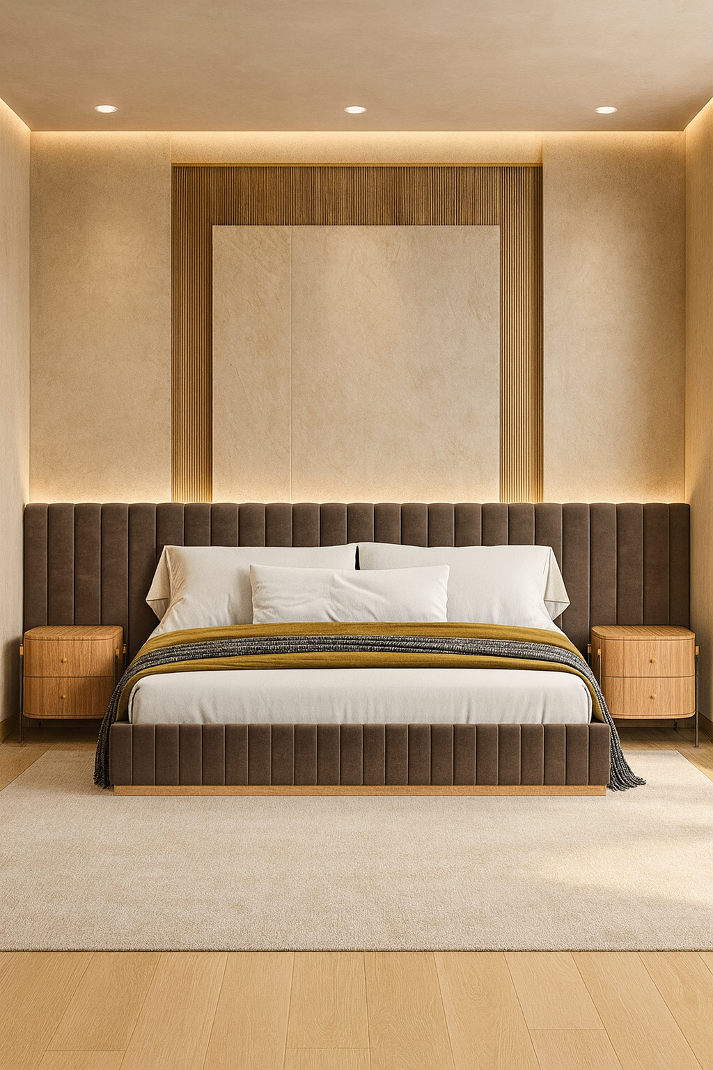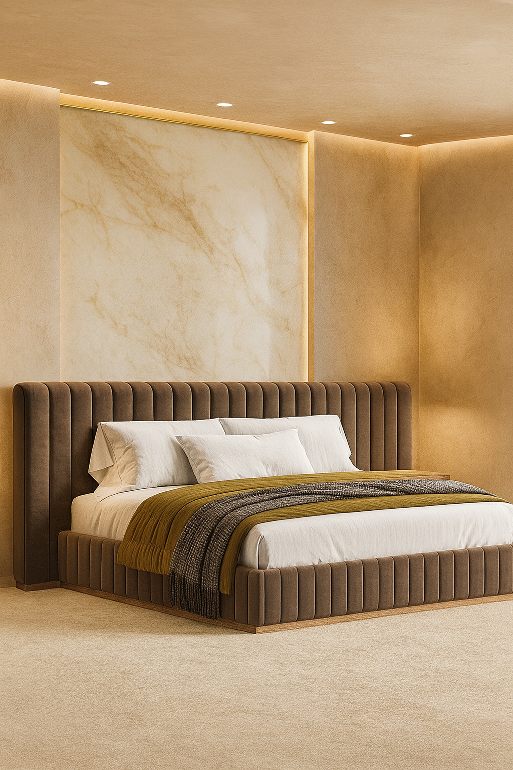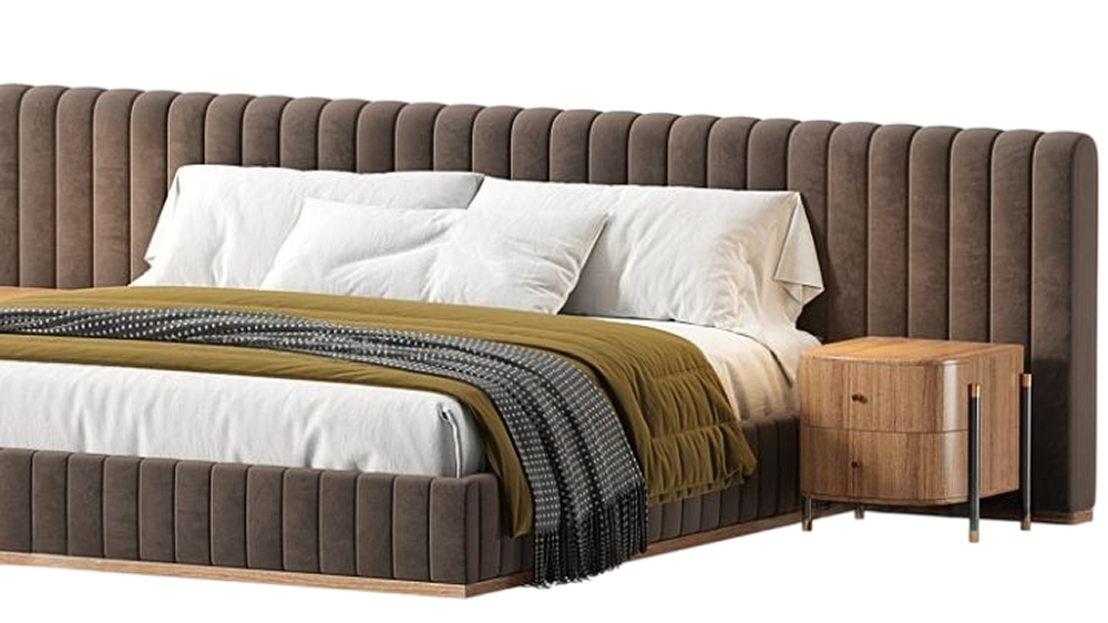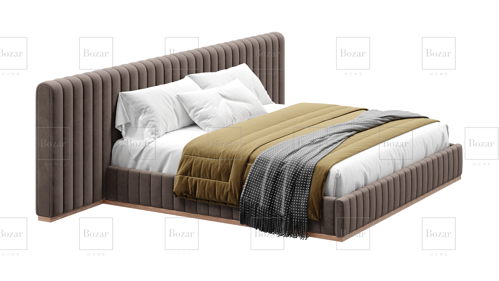 Lit Cascade, au design contemporain et raffiné, habillé d’un tissu doux et élégant. Sa tête de lit rembourrée assure un confort optimal pour se détendre ou lire, tandis que sa structure basse et ses lignes épurées apportent une touche moderne à la chambre. Disponible avec un large choix de tissus