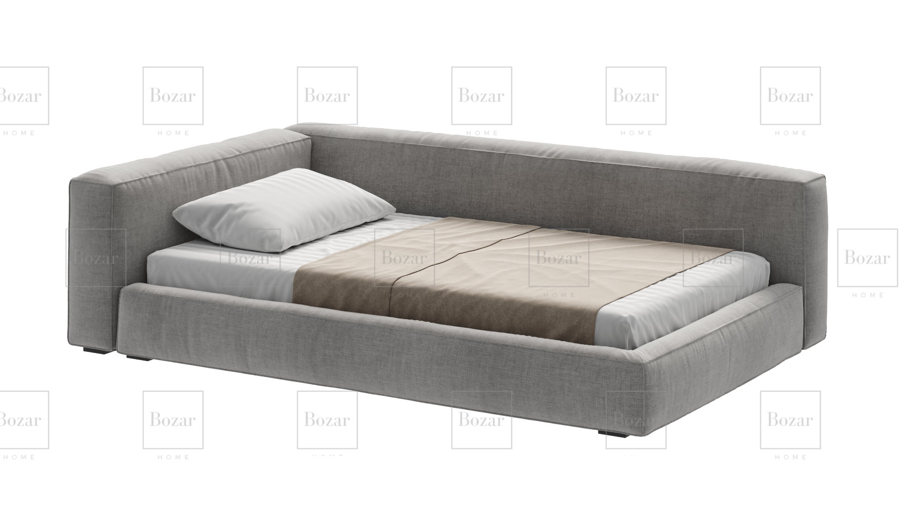 lit Junior moderne avec deux panneaux rembourrés – une tête de lit et un panneau latéral sur toute la longueur du lit. Cet agencement crée un coin rembourré et confortable avec un lit. Le corps du lit correspond en finition et en taille aux têtes de lit.