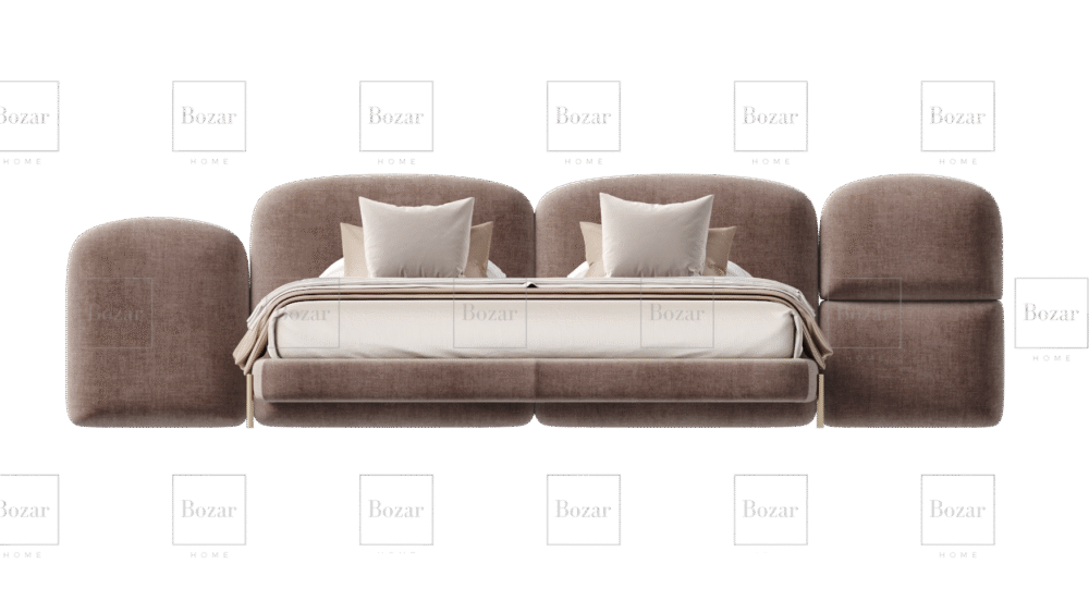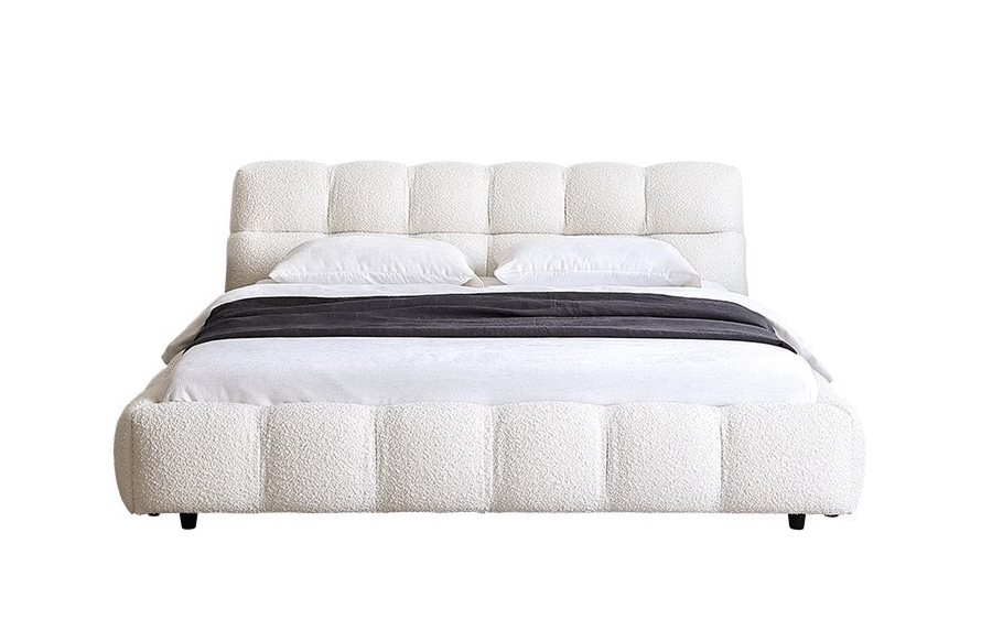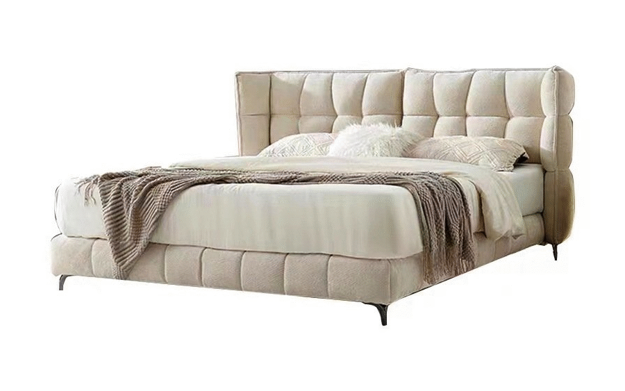 Lit Luna, au design contemporain et raffiné, habillé d’un tissu doux et élégant. Sa tête de lit rembourrée assure un confort optimal pour se détendre ou lire, tandis que sa structure basse et ses lignes épurées apportent une touche moderne à la chambre. Disponible avec un large choix de tissus