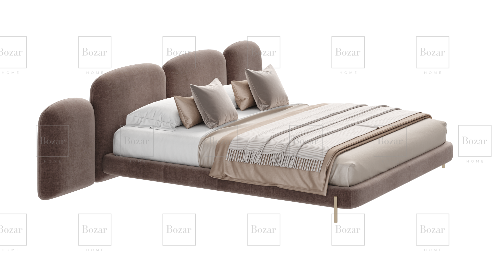 Lit Majestic, au design contemporain et raffiné, habillé d’un tissu doux et élégant. Sa tête de lit rembourrée assure un confort optimal pour se détendre ou lire, tandis que sa structure basse et ses lignes épurées apportent une touche moderne à la chambre. Disponible avec un large choix de tissus