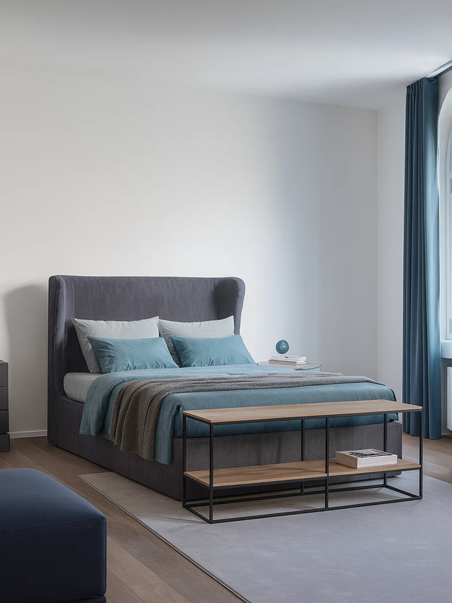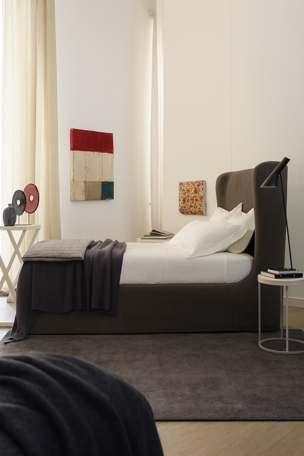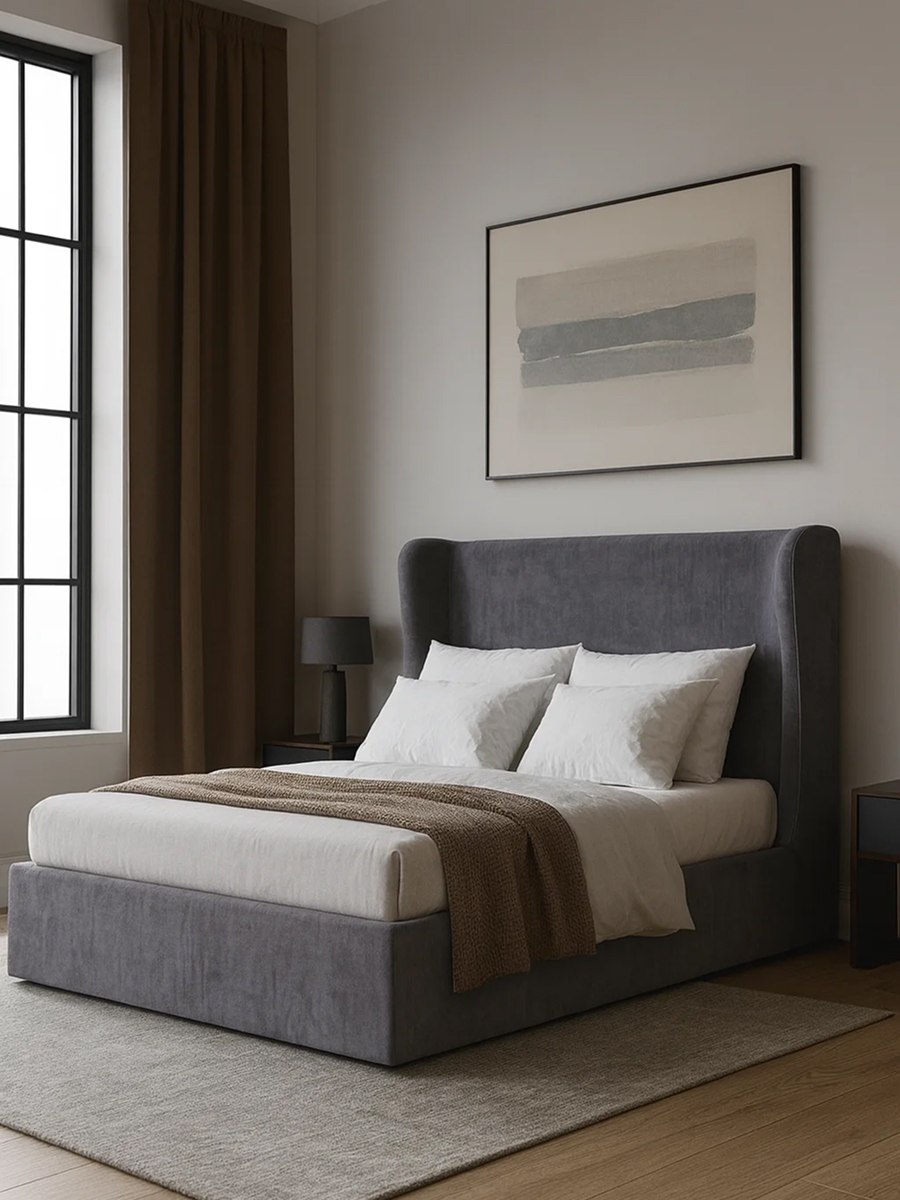 Lit Naomi, au design contemporain et raffiné, habillé d’un tissu doux et élégant. Sa tête de lit rembourrée assure un confort optimal pour se détendre ou lire, tandis que sa structure basse et ses lignes épurées apportent une touche moderne à la chambre. Disponible avec un large choix de tissus