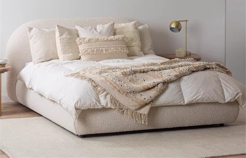 Lit Vida, au design contemporain et raffiné, habillé d’un tissu doux et élégant. Sa tête de lit rembourrée assure un confort optimal pour se détendre ou lire, tandis que sa structure basse et ses lignes épurées apportent une touche moderne à la chambre. Disponible avec un large choix de tissus