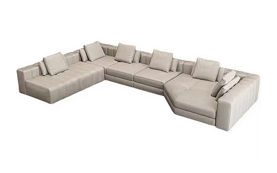 Canapé modulaire Opus, assise profonde, dossiers et accoudoirs massifs.