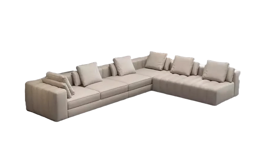 Canapé modulaire Opus, assise profonde, dossiers et accoudoirs massifs.