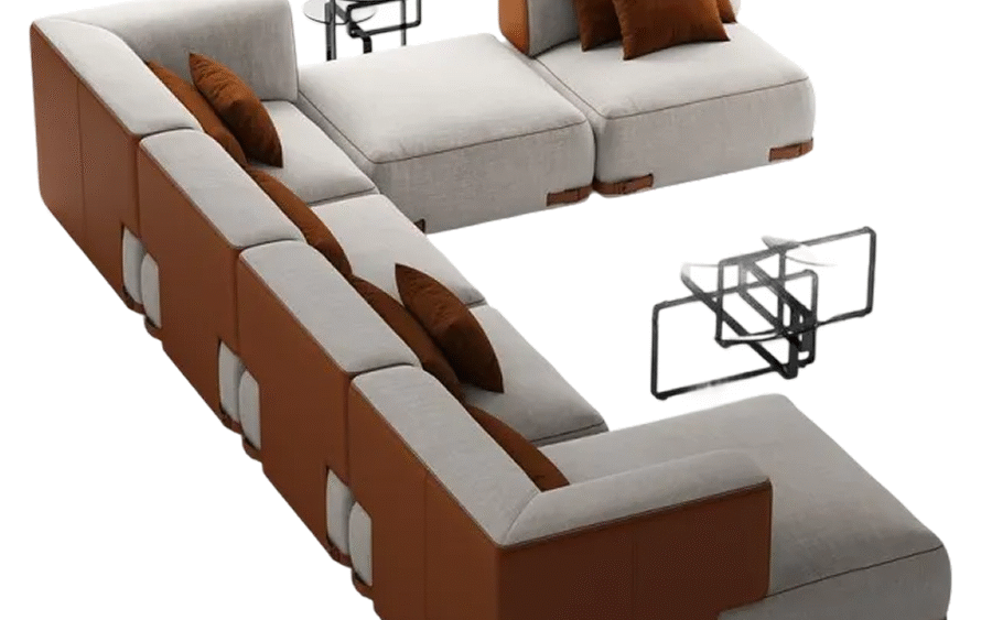 Canapé modulaire Sofia avec assise profonde et module arrondi configurable.